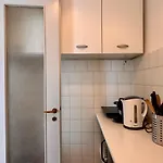 The 1-bedroom apartment has a fully equipped kitchen, and comforts such as an air conditioner.